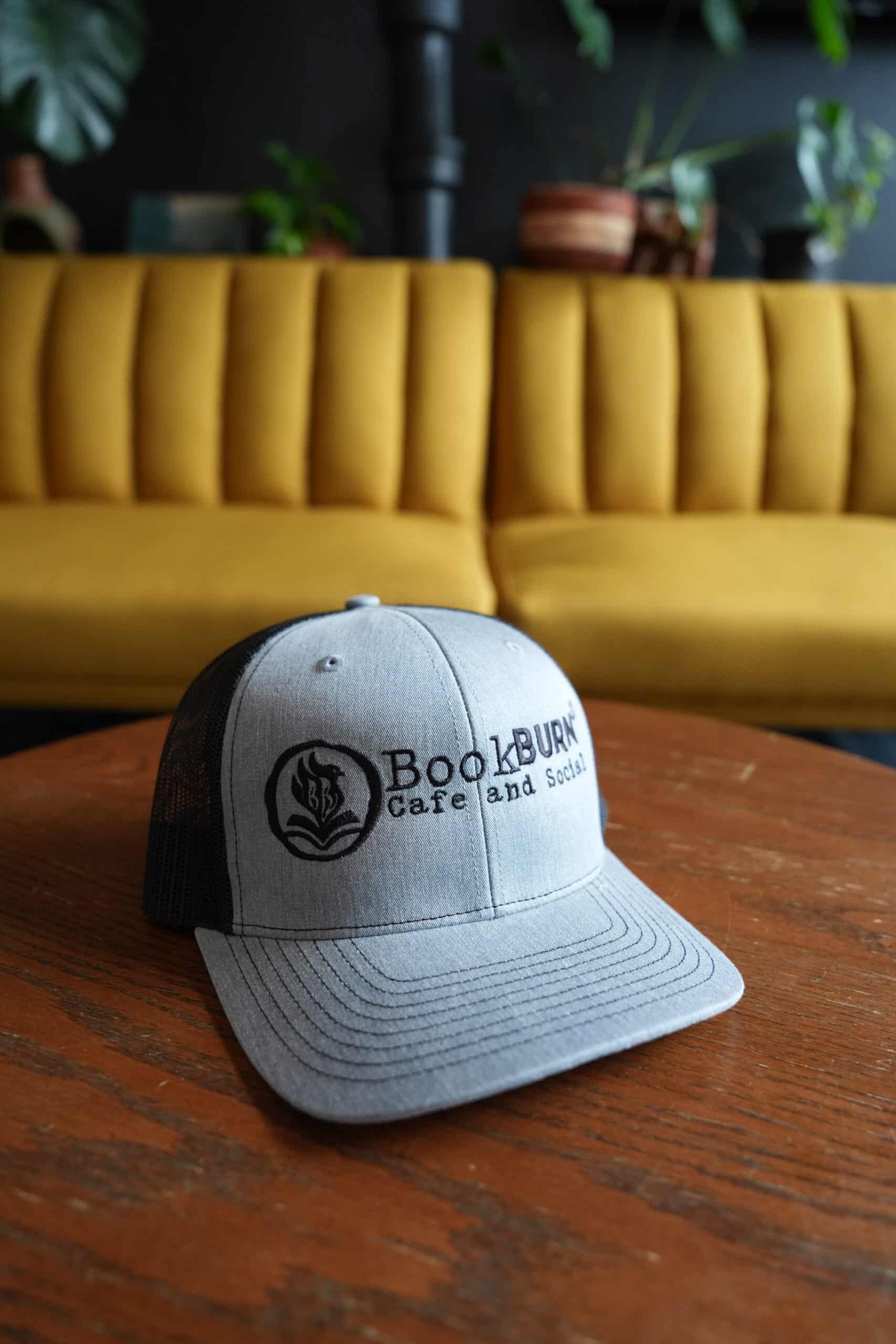 A stylish and breathable BookBurn logo hat designed for everyday wear and representing Orlando’s creative cafe community.